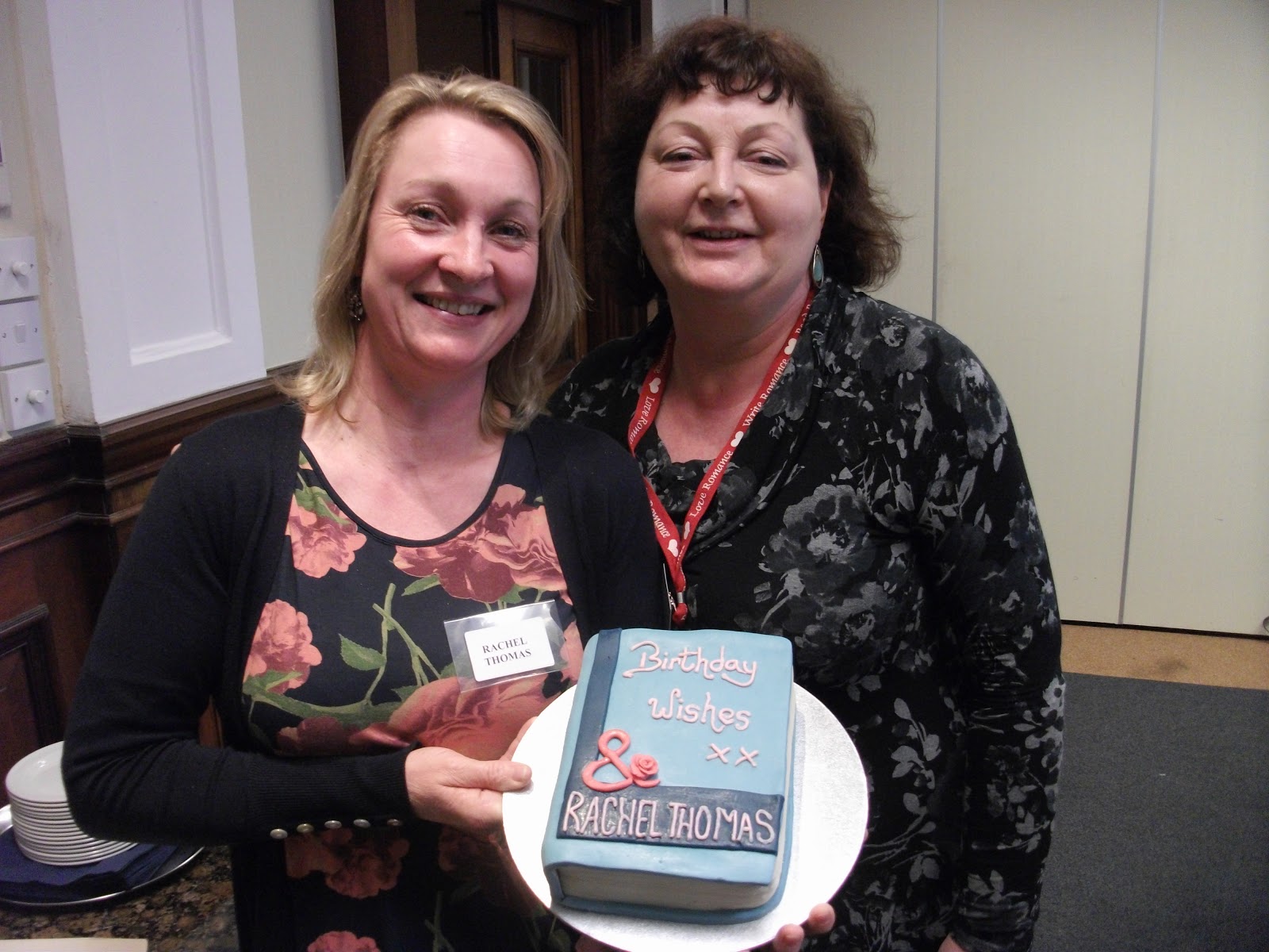I arrived in Fishguard on Valentine's Day, and my birthday, for a weekend course with Kate Walker on writing romance. Whilst other diners where having quiet moments the early arrivals to the course were singing Happy Birthday to me. It was a lovely and unexpected surprise.I saved the cake to share with the other romance writers in the group and on Saturday afternoon we had enjoyed a piece of the book.